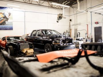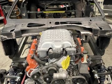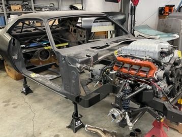 The largest project in the shop is the 1973 Plymouth Cuda’, powered by a Hellcat turnkey pallet sourced by Cleveland Power and Performance. The powertrain is held on by the custom Roadster Shop chassis.