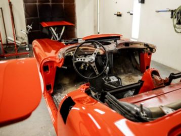 The 1961 Corvette that came into the shop for paint and bodywork. This corvette still has its original 283 cubic inch engine with a 4 speed manua.