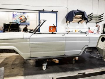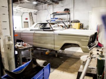 A 1965 Jeep Grand Wagoneer being rebuilt from the ground up. The powertrain is a 392 HEMI engine with a 727 torqueflite transmission, managed by a Holley Terminator X Maxx. Dana 44 front and rear axles have been installed, with a new process transfer case and disc brakes. The Jeep will sit on a 4 inch lift with 32 inch wheels. A custom interior with a full custom roll cage will also be assembled and installed.